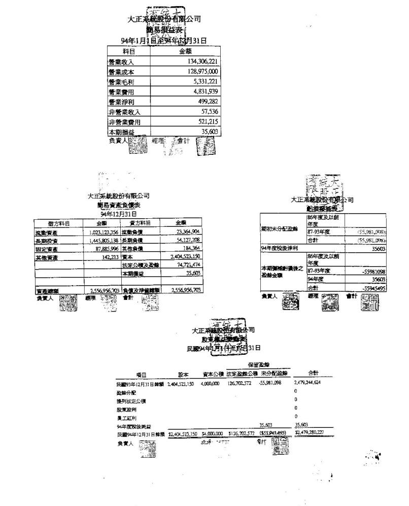 承認九十四年度財務報表及虧損撥補表(詳如附件):承認