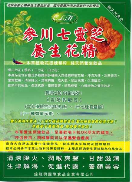 股東李重義的錦龍興公司與實踐大學合作劉麗雲教授指導的產品蔘川七養生花精茶特別介紹給各股東參考有興趣可與李先生直接聯絡